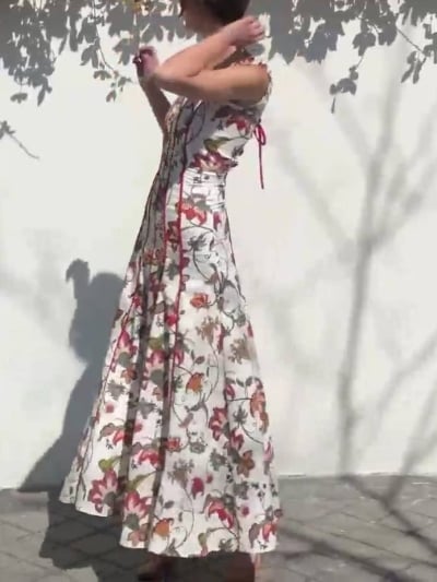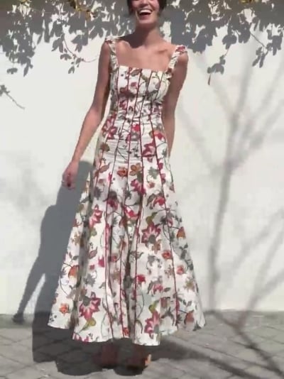 Back Strap Floral Suspender Dress