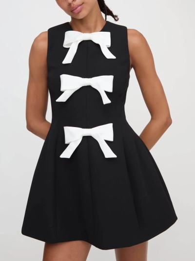 Elegant Round Neck Bow Embellished Mini Dress