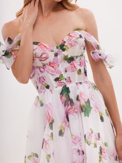 Tender floral midi tie-strap dress