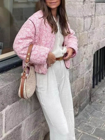 Unique Quilted Pink Flower Pocket Jacket